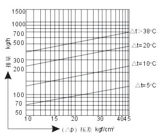 ● △ t 為排水溫度與飽和凝結(jié)水溫度之差,溫度( △ t )增加,排量隨之增加。